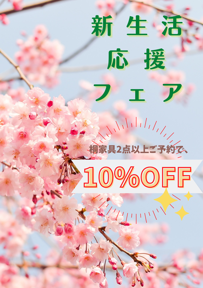 2月に入り、新年度の準備を始める方も多いのではないでしょうか。 桐子モダンでは新生活応援フェアを開催中です! 桐家具を2点以上ご予約で、合計金額より10%OFFさせて頂きます。 店頭はもちろん、桐子モダンオンラインショップでも、一部商品をセール価格でご用意しております。 お得な機会にぜひ、桐子モダンの桐家具をご体感下さい。 お電話でのお問い合わせもお気軽にどうぞ! 【桐子モダンオンラインショップ】