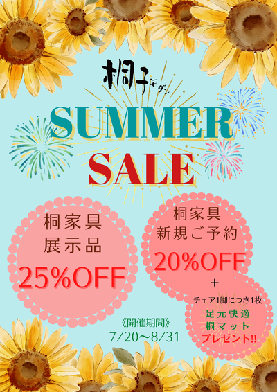 桐子モダン新潟本社ショールーム、日本橋店ではサマーセール開催中です。