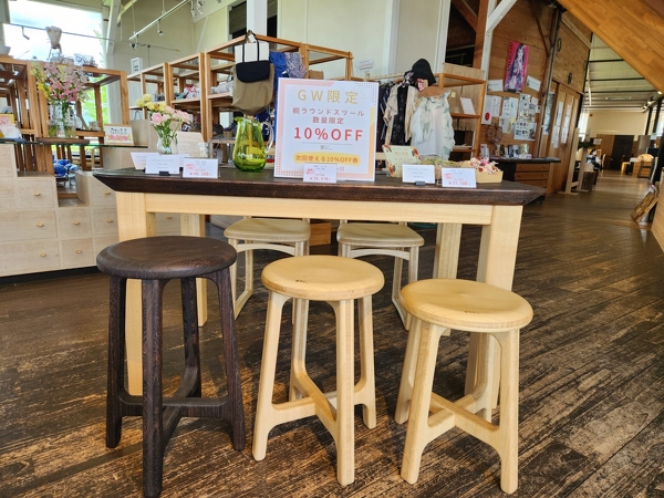 GW限定SALE!! ちょっと腰かけに人気の 【桐のラウンドスツール】 数量限定10%OFFでご用意しました! お子様が持てるほどの軽さと、ずっと触っていたくなるなめらかな手触りが人気の秘密です。 数量限定で、 H450クリア…3脚 H500クリア…現品限り H550焼杢…1脚 7日までの特別価格となります。 気になる方はお早めに♪ メールやお電話でもお気軽にお問い合わせ下さい。 お得な機会にぜひ桐子モダン品質をご体感下さい(*^^*)