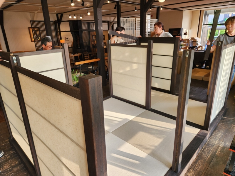 短時間でしっかりした茶室がショールームに出現しました。