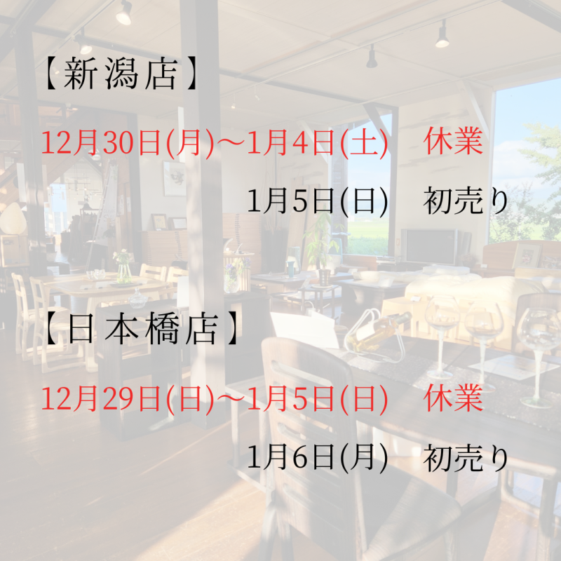 こんにちは。桐子モダンです。 あっという間にこのお知らせをする季節がやってきました。 前回の投稿を見ると、7月…。ぞっとしました…(^^) 年末年始の営業日のお知らせです。 年末年始はSALEも企画中です。 またこちらでお知らせさせて頂きますので、ぜひお楽しみに!