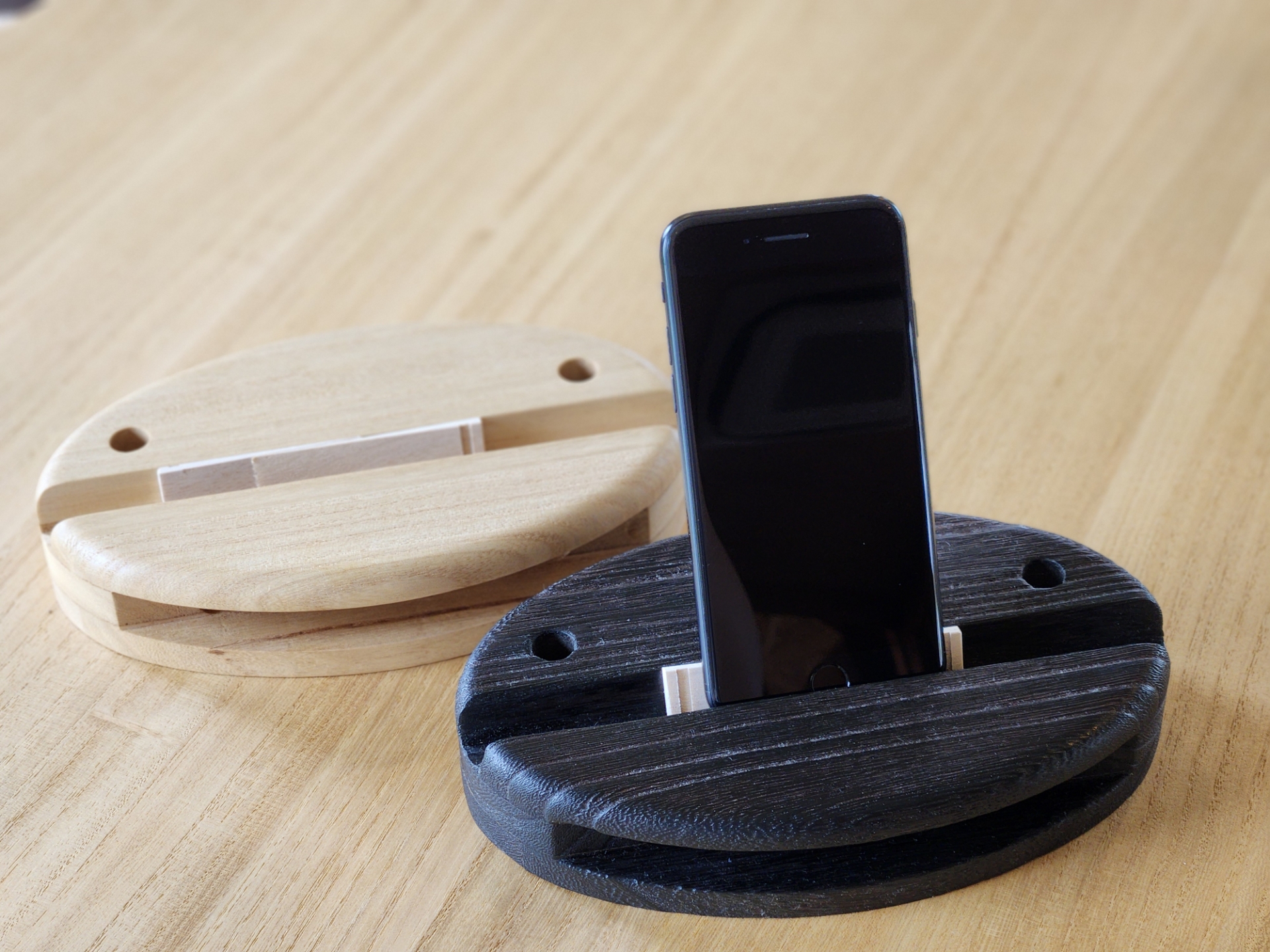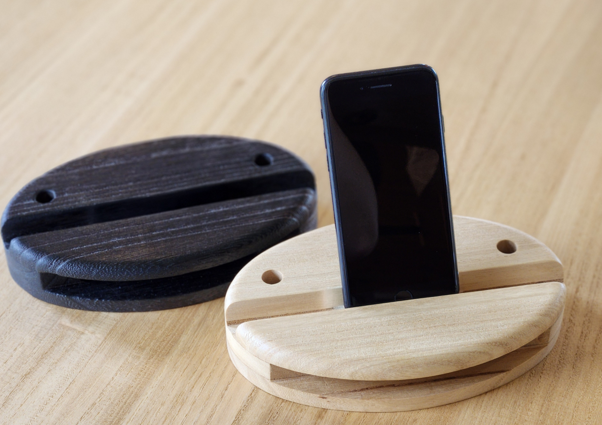 桐スマホスタンドスピーカー 磨きにこだわったなめらかな手触りと、桐ならではの軽やかさが魅力のスマホスタンドです。 置くだけで音がやさしく広がるスピーカー機能を備え、音楽や通話を心地よく楽しめます。 ナチュラルな風合いで、インテリアとしてもお部屋にやさしく馴染みます。 価格 ¥9,350(税込) カラー クリア・焼杢 ご購入はこちらから