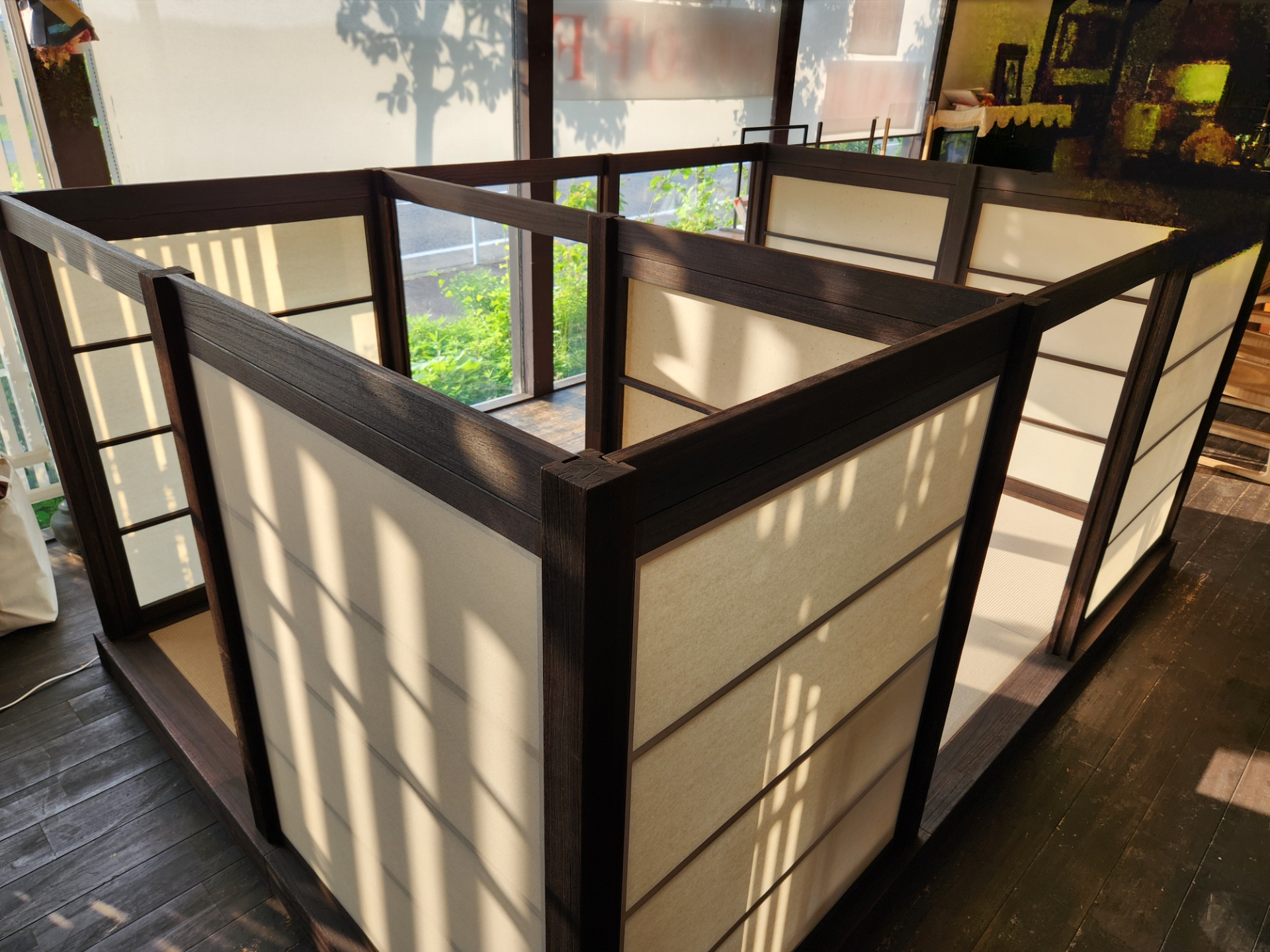 組立式一坪茶室【桐庵】 茶道愛好家のご要望をもとに製作した組立式の一坪茶室。桐ならではの軽さで、女性でも持ち運びと組立が可能です。お茶室の静けさや気品を、場所を選ばず気軽に楽しめます。 サイズ W2000 D3000 H1200 価格 ¥1,100,000(税込) カラー ご相談ください。 【 一坪茶室体験会 】
