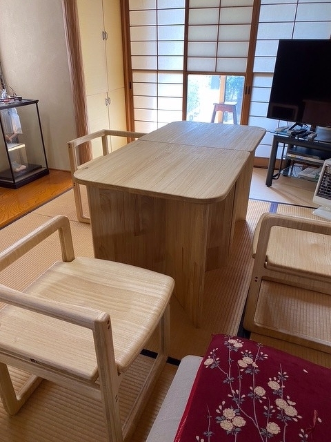 居間でのご利用ということで、桐チェアも桐テーブルも通常より低めの寸法でお作りしました。